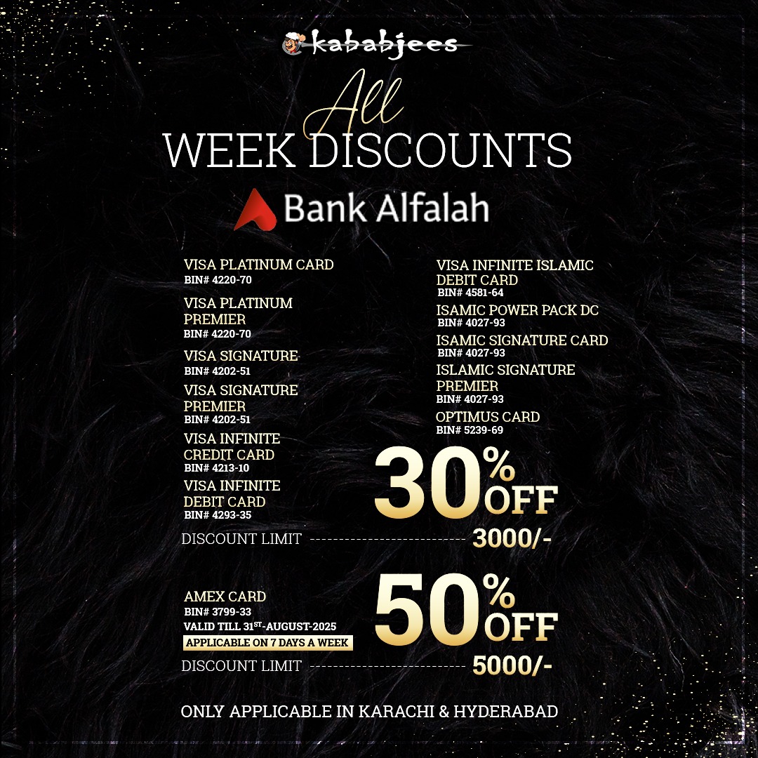 Now you can have the goodness of Kababjees delivered at home by just ringing us a bell. Call 111-666-111 for more information.